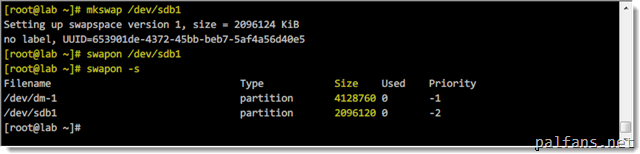 首先运行swapon命令查看交换空间大小,如果得到的大小少于2097152,就需要增加交换空间。